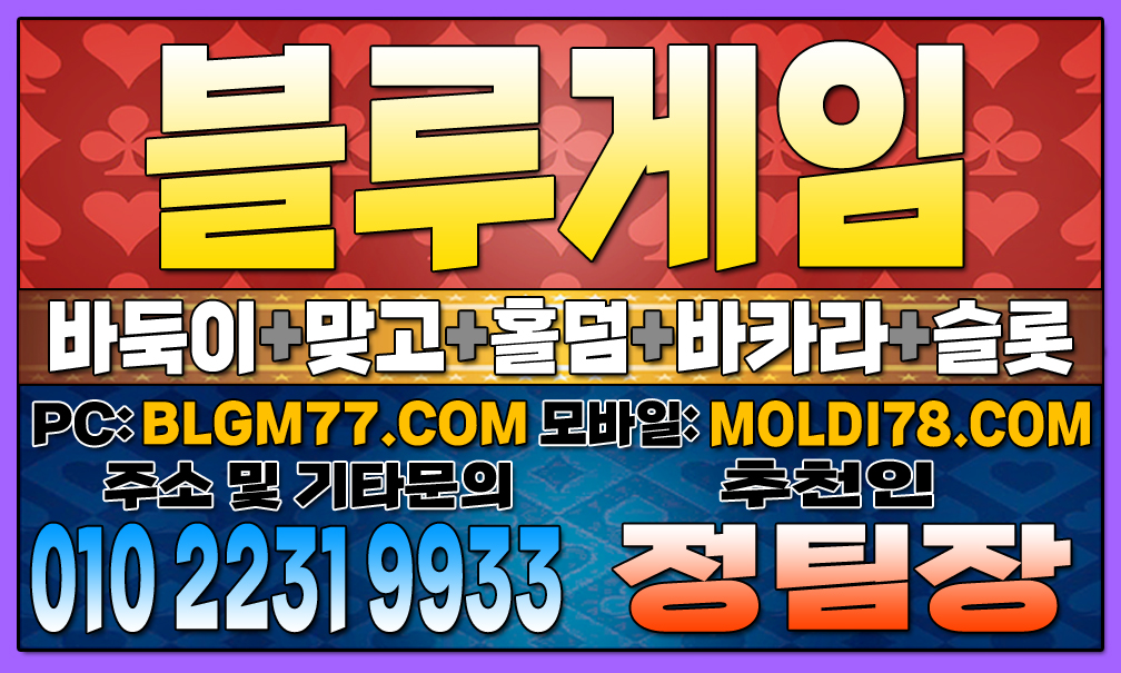 지금 바로 블루게임(바둑이,맞고,홀덤,슬롯,바카라)에서 검증된 온라인 게임을 시작하세요!정기적인 업데이트와 최신 정보 안내를 통해 항상 신뢰할 수 있는 서비스를 제공합니다. 소액 및 고액 금액에 관계없이 모두가 공평한 대우를 받으며, 타 업체 대비 높은 수익률을 기대할 수 있습니다. 최신 정보 안내 및 기타 문의 010-2231-9933 가입추천:정팀장 텔레: jtj007