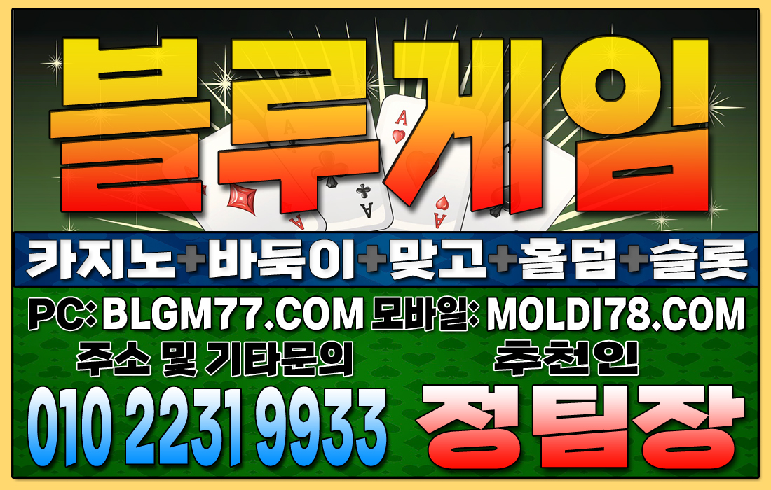 지금 바로 블루게임(바둑이,맞고,홀덤,슬롯,바카라)에서 검증된 온라인 게임을 시작하세요!정기적인 업데이트와 최신 정보 안내를 통해 항상 신뢰할 수 있는 서비스를 제공합니다. 소액 및 고액 금액에 관계없이 모두가 공평한 대우를 받으며, 타 업체 대비 높은 수익률을 기대할 수 있습니다. 최신 정보 안내 및 기타 문의 010-2231-9933 가입추천:정팀장 텔레: jtj007