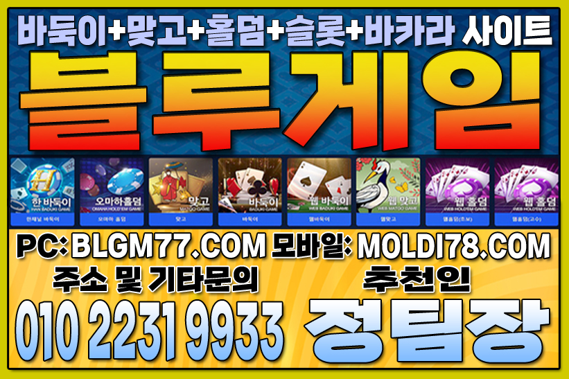 | 제목 | 블루게임홀덤 블루게임바둑이 블루게임맞고 블루게임바카라 블루게임슬롯 몰디브맞고 몰디브홀덤 몰디브바둑이 온라인바카라 | ||||