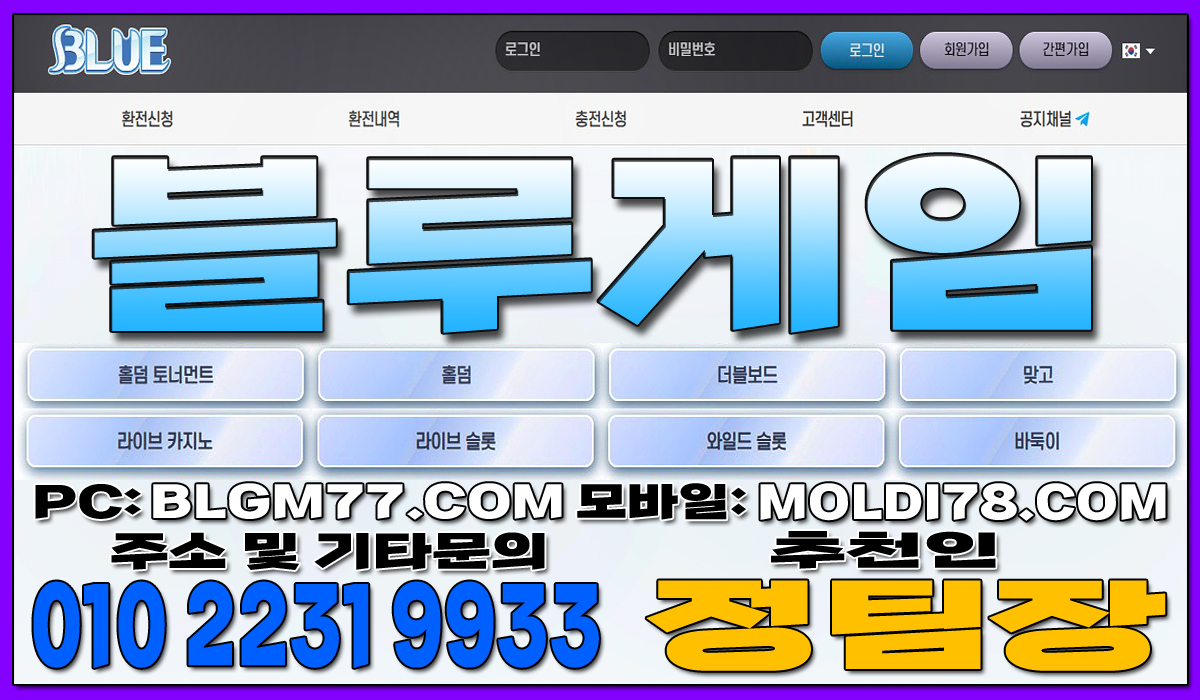 블루게임의 인기 게임 종류-블루게임은 다양한 게임 종류를 제공하며, 그중에서도 블루바둑이,블루홀덤,블루맞고,블루슬롯,블루라이브슬롯과 아이폰 유저를 위한 블루게임홀덤의무설치 웹버전인 와일드홀덤 등이 대표적입니다.이러한 게임들은 유저들에게 흥미로운 게임 경험을 선사하며, 단순한 게임 그 이상의 즐거움을 제공합니다. 지금 바로 블루게임(바둑이,맞고,홀덤,슬롯,바카라)에서 검증된 온라인 게임을 시작하세요!정기적인 업데이트와 최신 정보 안내를 통해 항상 신뢰할 수 있는 서비스를 제공합니다. 소액 및 고액 금액에 관계없이 모두가 공평한 대우를 받으며, 타 업체 대비 높은 수익률을 기대할 수 있습니다. 최신 정보 안내 및 기타 문의 010-2231-9933 가입추천:정팀장 텔레: jtj007