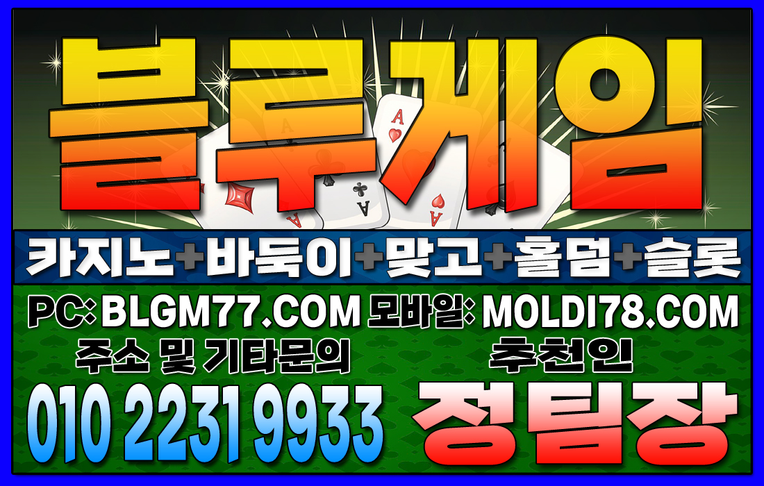 지금 바로 블루게임(바둑이,맞고,홀덤,슬롯,바카라)에서 검증된 온라인 게임을 시작하세요!정기적인 업데이트와 최신 정보 안내를 통해 항상 신뢰할 수 있는 서비스를 제공합니다. 소액 및 고액 금액에 관계없이 모두가 공평한 대우를 받으며, 타 업체 대비 높은 수익률을 기대할 수 있습니다. 최신 정보 안내 및 기타 문의 010-2231-9933 가입추천:정팀장 텔레: jtj007