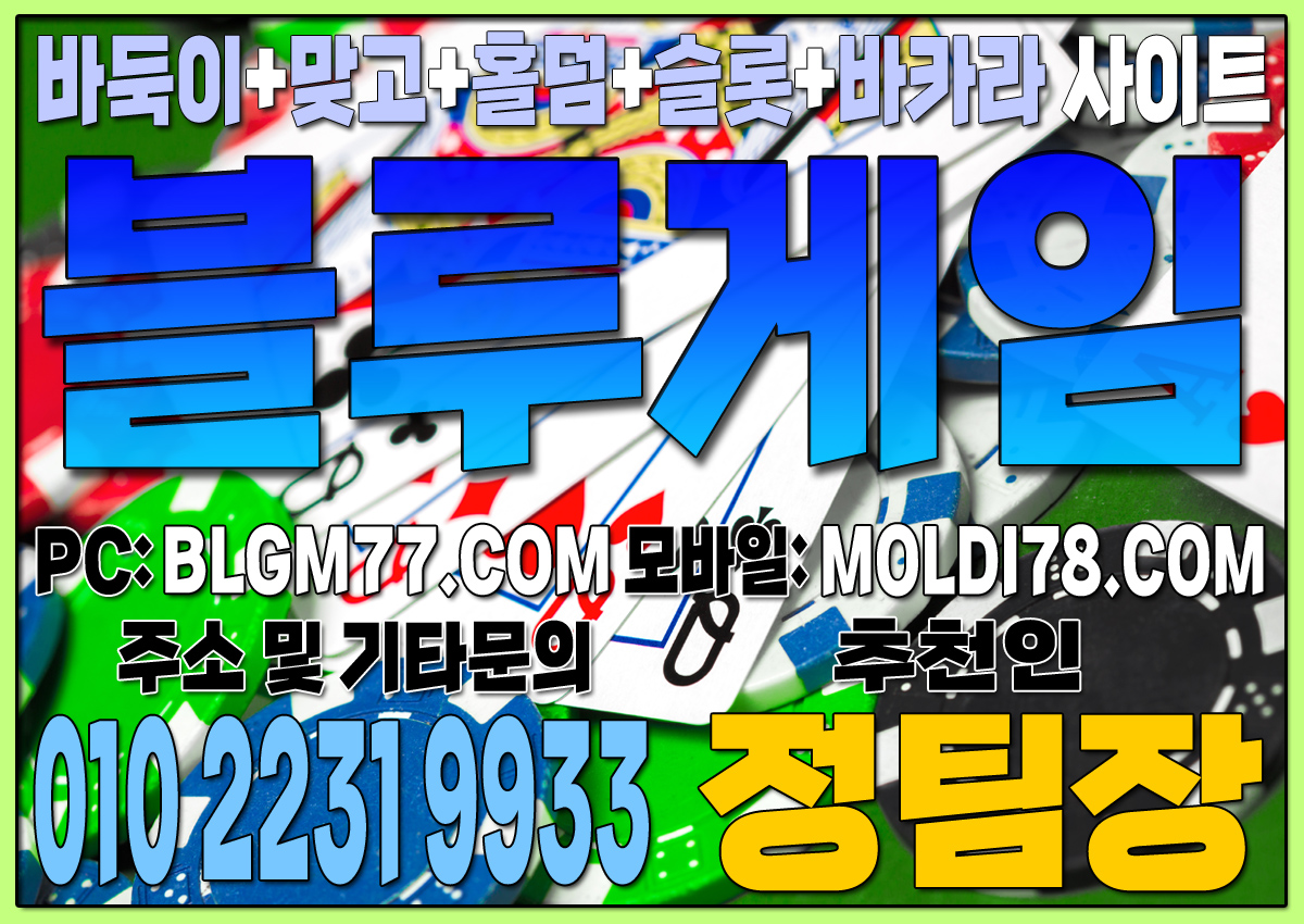 최신 정보 안내 및 기타 문의 010-2231-9933 가입추천:정팀장 텔레: jtj007지금 바로 블루게임(바둑이,맞고,홀덤,슬롯,바카라)에서 검증된 온라인 게임을 시작하세요!정기적인 업데이트와 최신 정보 안내를 통해 항상 신뢰할 수 있는 서비스를 제공합니다. 소액 및 고액 금액에 관계없이 모두가 공평한 대우를 받으며, 타 업체 대비 높은 수익률을 기대할 수 있습니다.