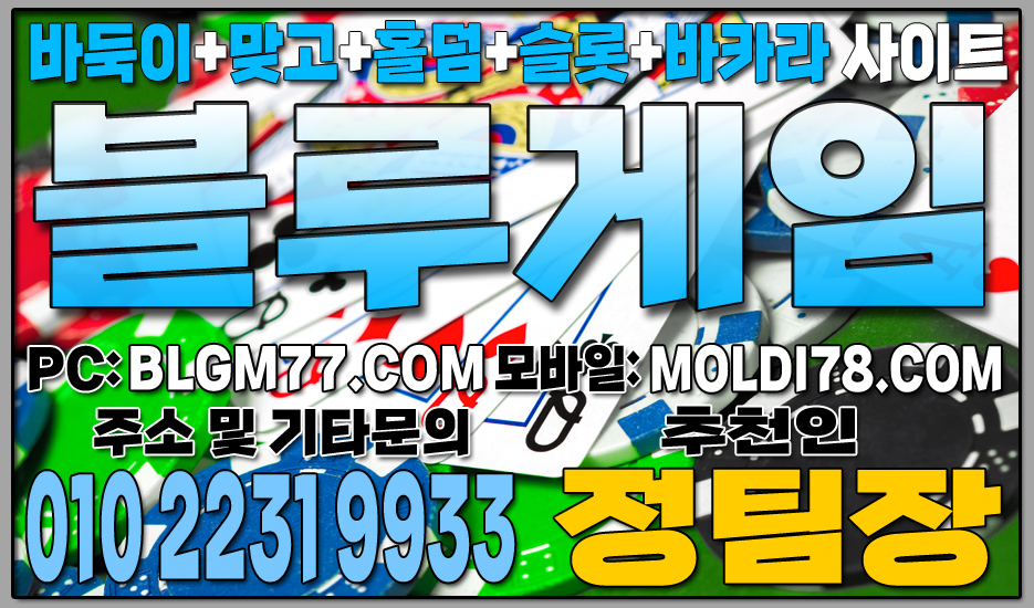 최신 정보 안내 및 기타 문의 010-2231-9933 가입추천:정팀장 텔레: jtj007지금 바로 블루게임(바둑이,맞고,홀덤,슬롯,바카라)에서 검증된 온라인 게임을 시작하세요!정기적인 업데이트와 최신 정보 안내를 통해 항상 신뢰할 수 있는 서비스를 제공합니다. 소액 및 고액 금액에 관계없이 모두가 공평한 대우를 받으며, 타 업체 대비 높은 수익률을 기대할 수 있습니다.