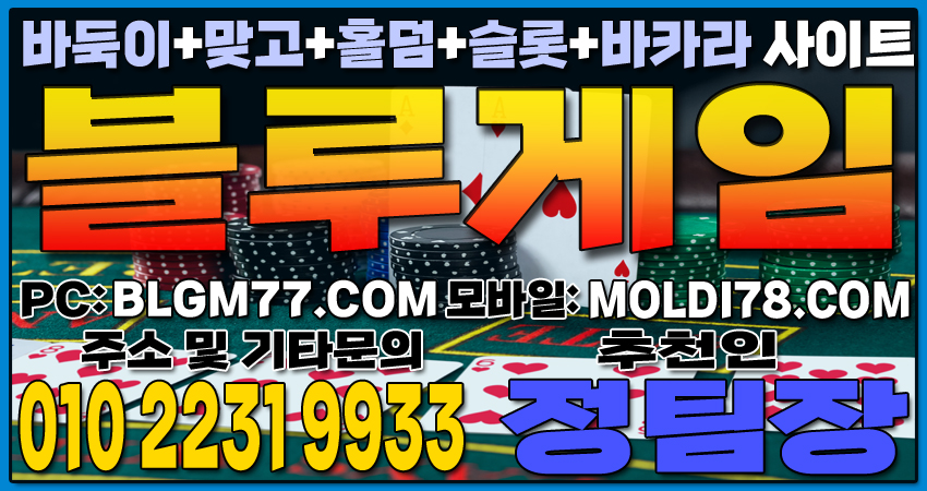 최신 정보 안내 및 기타 문의 010-2231-9933 가입추천:정팀장 텔레: jtj007지금 바로 블루게임(바둑이,맞고,홀덤,슬롯,바카라)에서 검증된 온라인 게임을 시작하세요!정기적인 업데이트와 최신 정보 안내를 통해 항상 신뢰할 수 있는 서비스를 제공합니다. 소액 및 고액 금액에 관계없이 모두가 공평한 대우를 받으며, 타 업체 대비 높은 수익률을 기대할 수 있습니다.